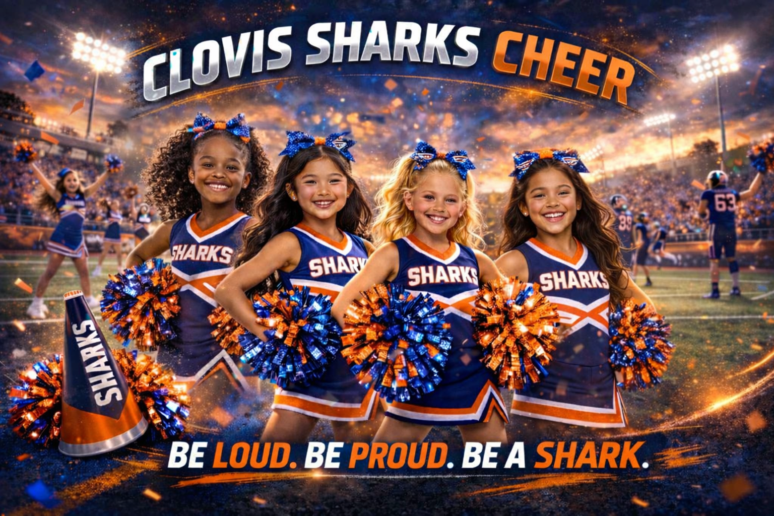 The Clovis Sharks Youth Football & Cheer program provides K–6 athletes with a positive, structured environment focused on fundamentals, discipline, and character. We strive to develop confident athletes while promoting respect, integrity, and strong values that extend beyond the field.